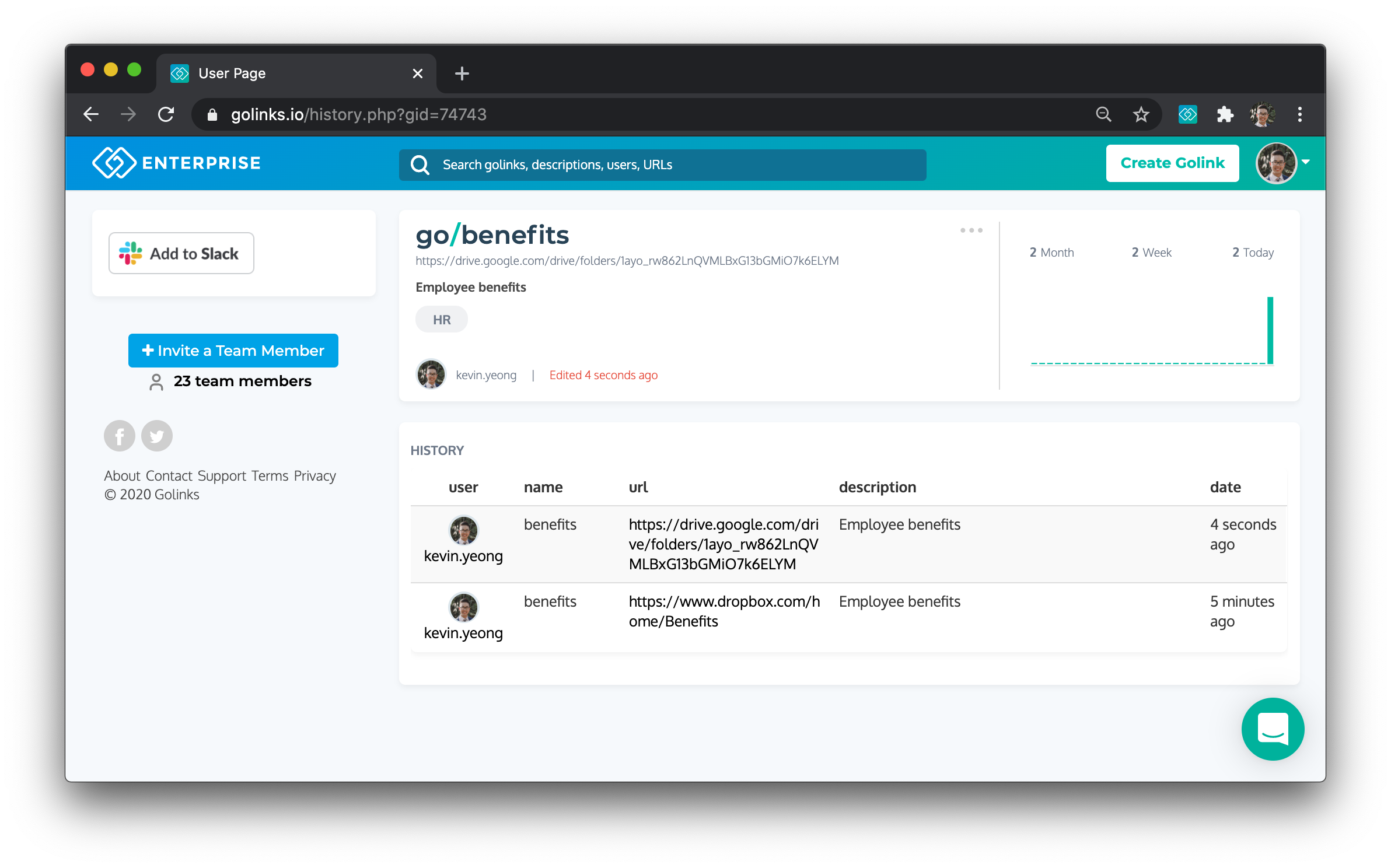 • Instant content access: GoLinks allows you to create concise links to specific files or folders in Dropbox. This eliminates the need to search or manually navigate through numerous directories, enabling you to quickly access the files you need, share them with colleagues, or collaborate seamlessly.